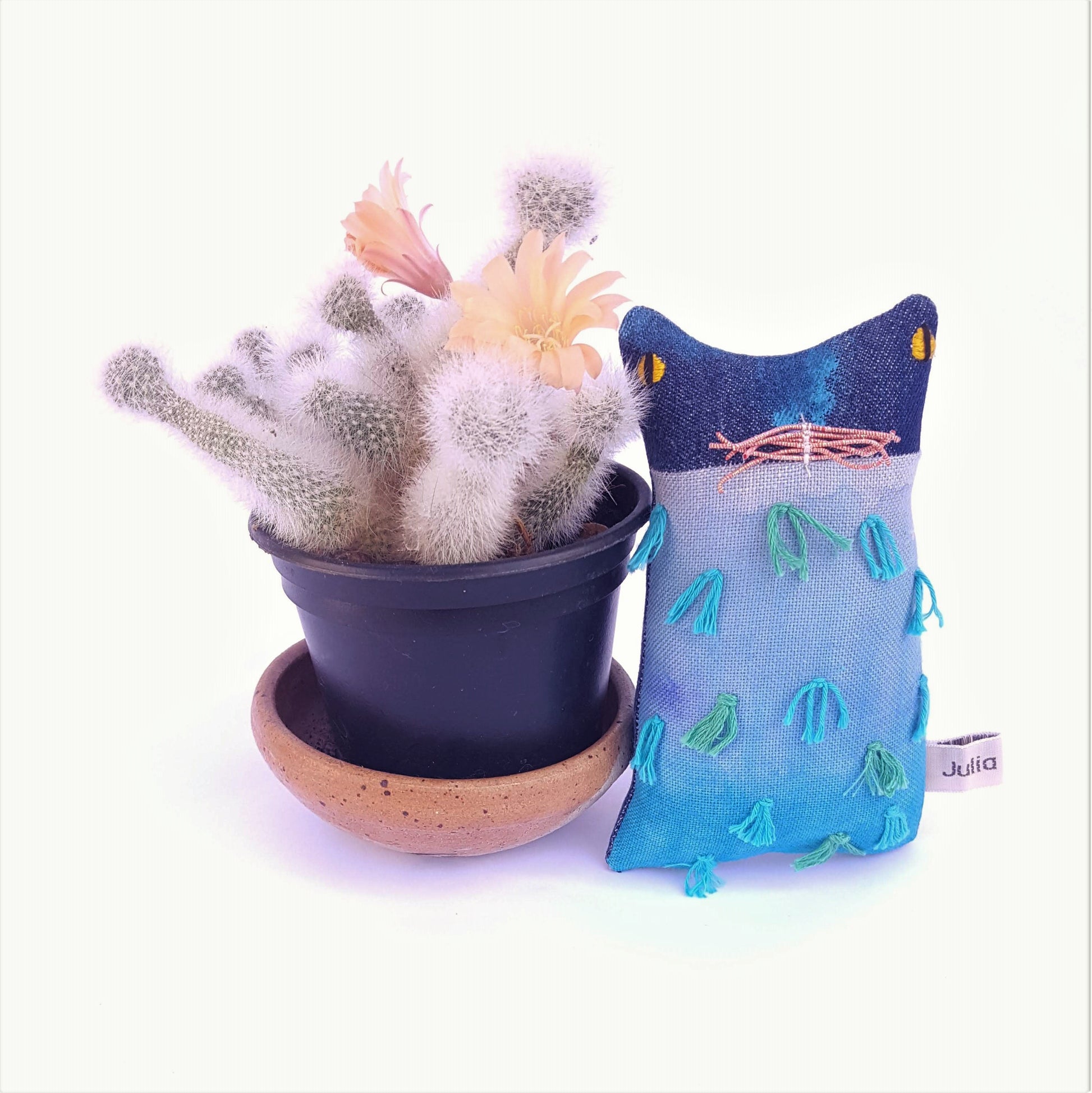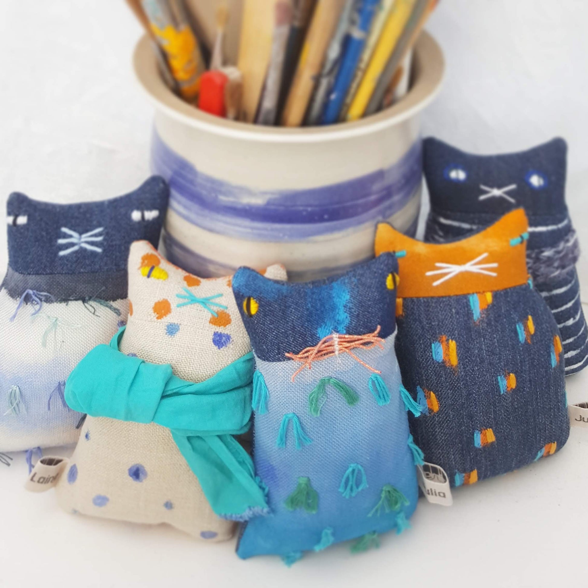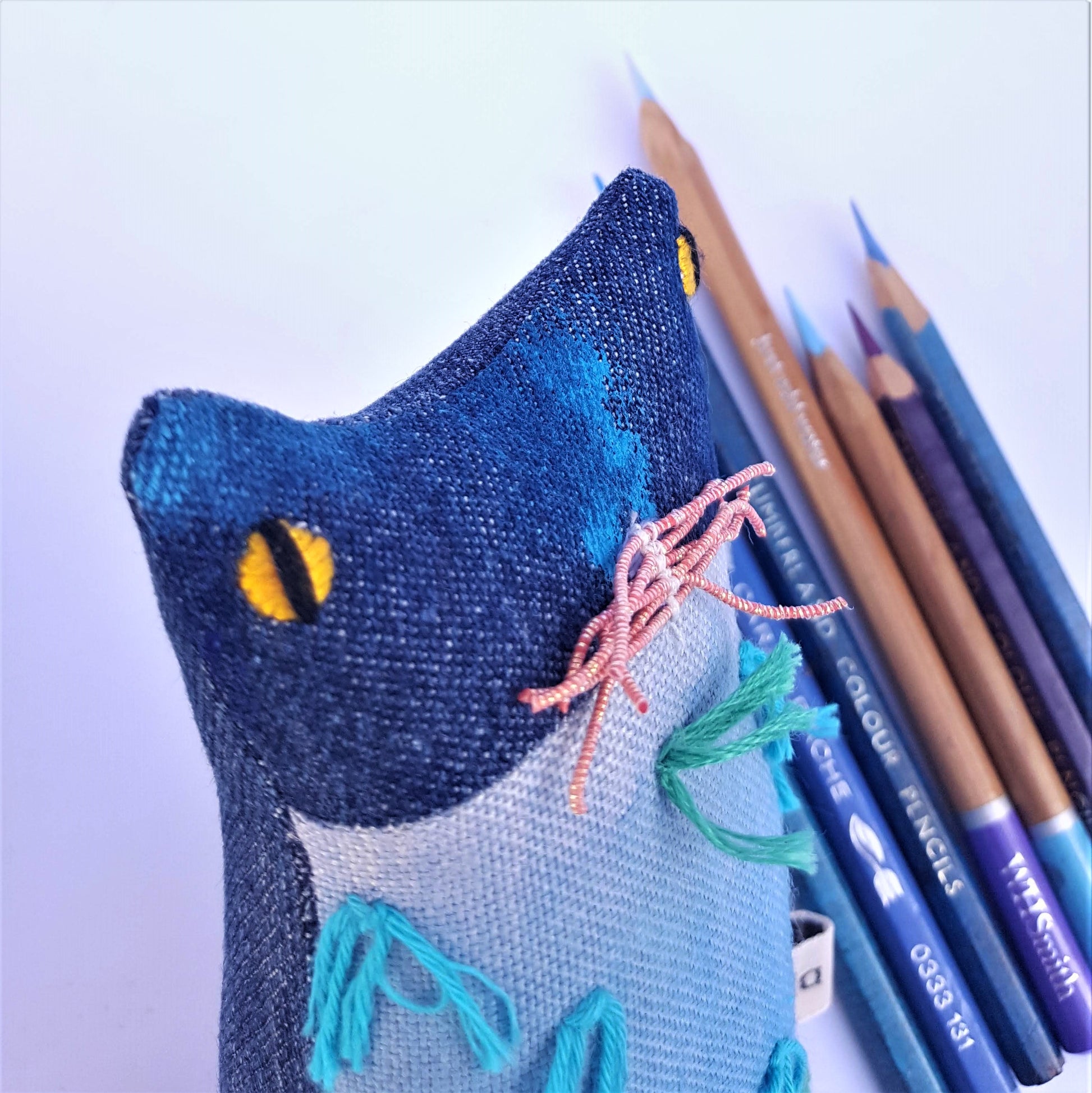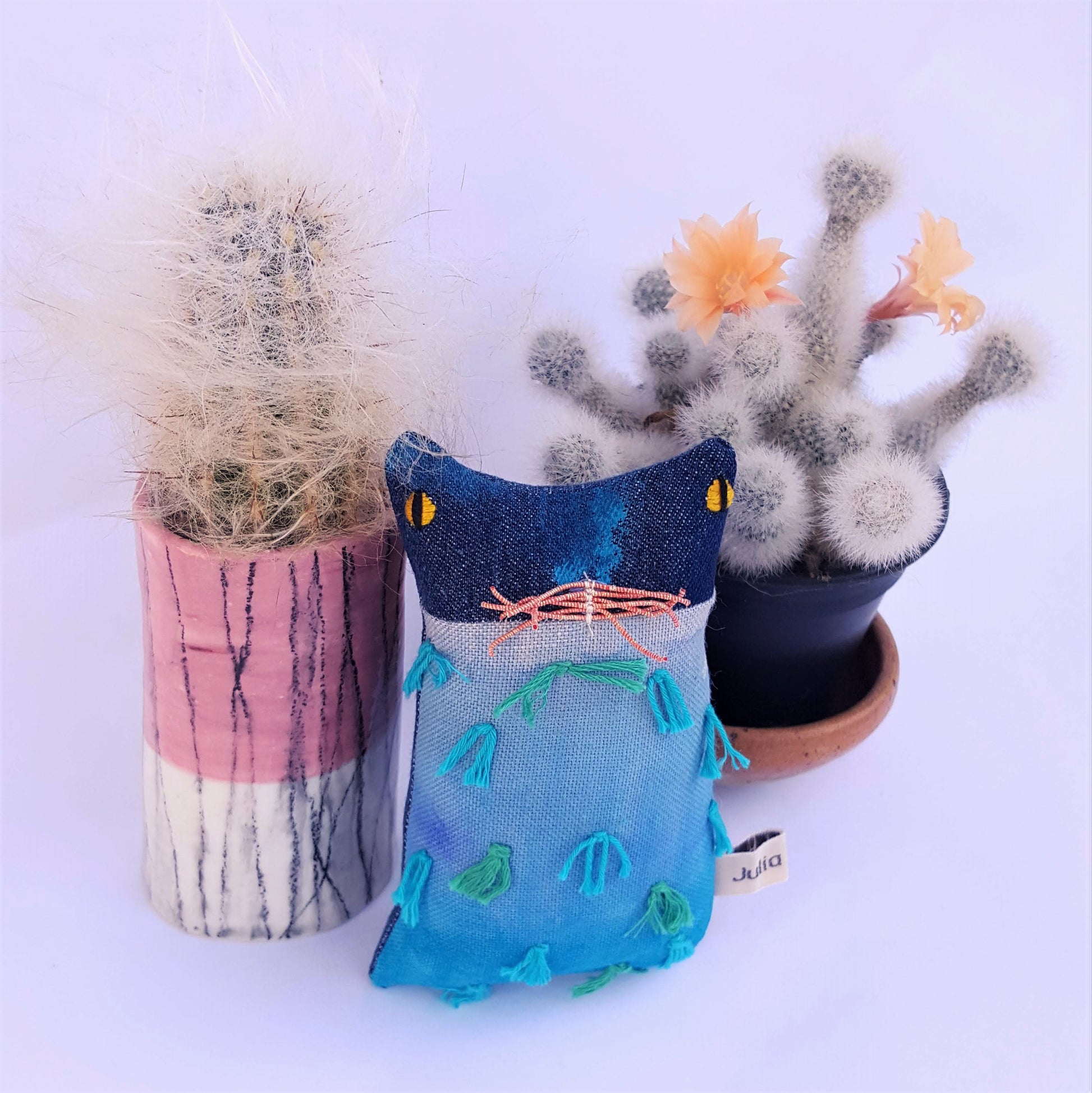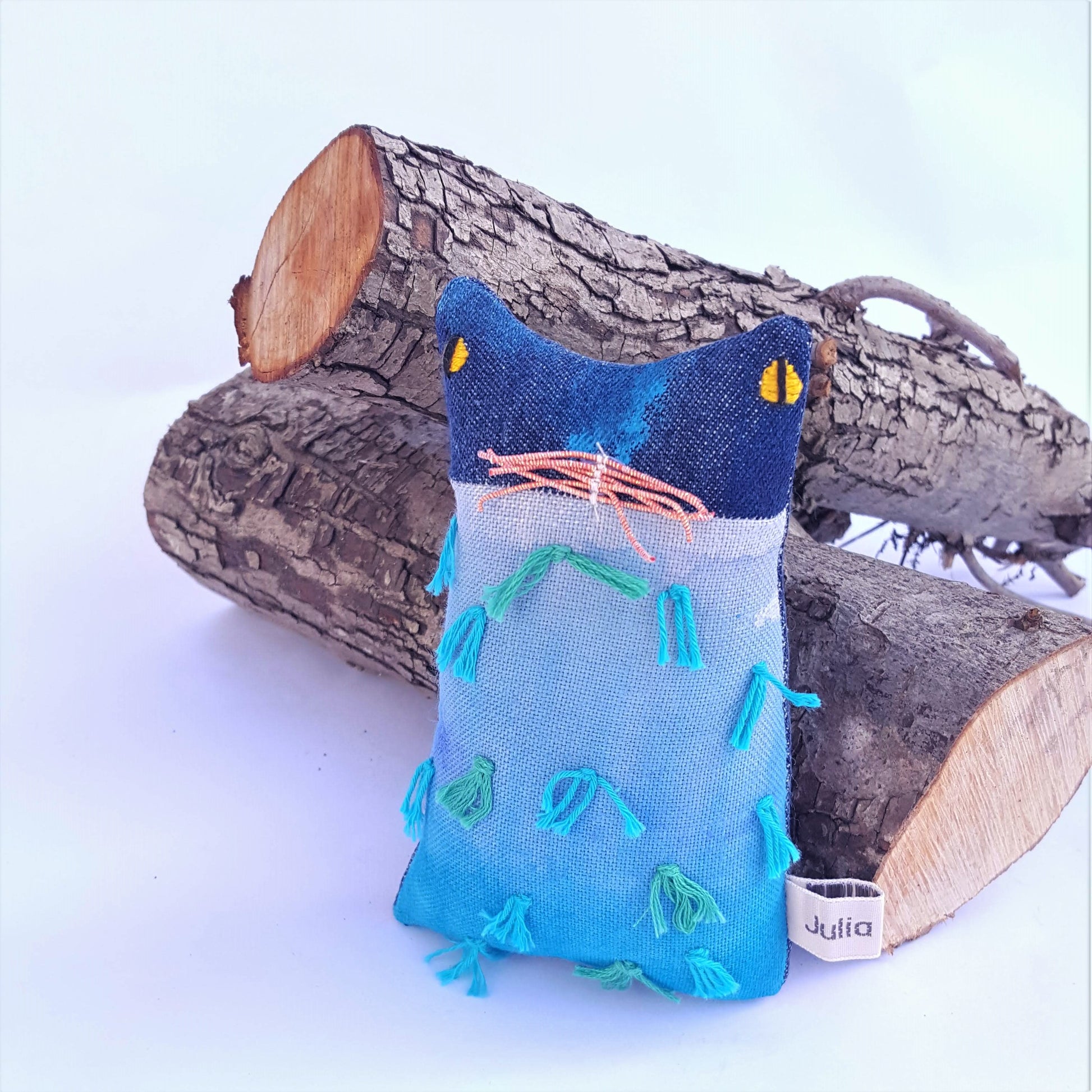 Here is a cute and quirky ornamental soft-sculpture kitten doll called Ocean.