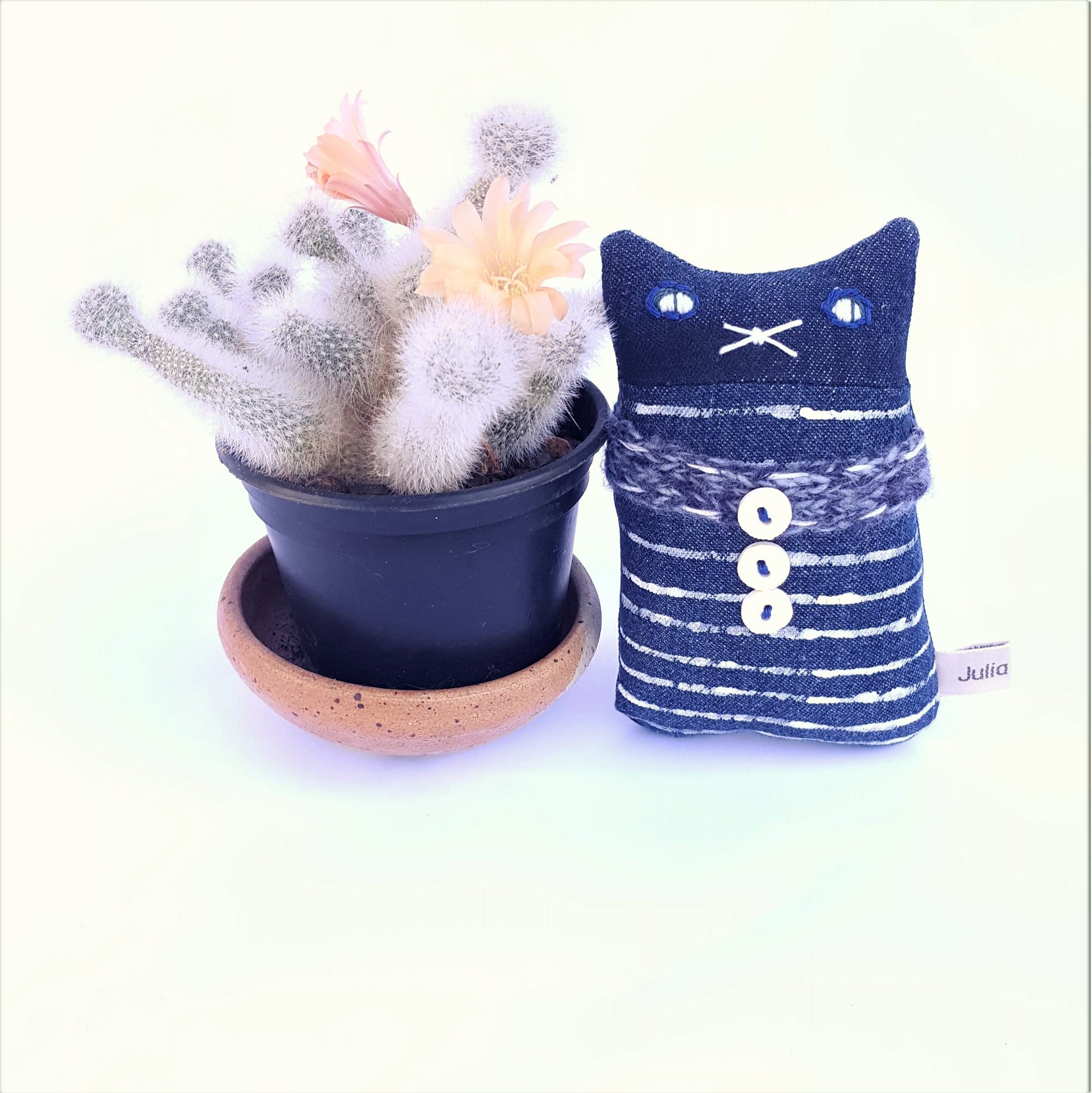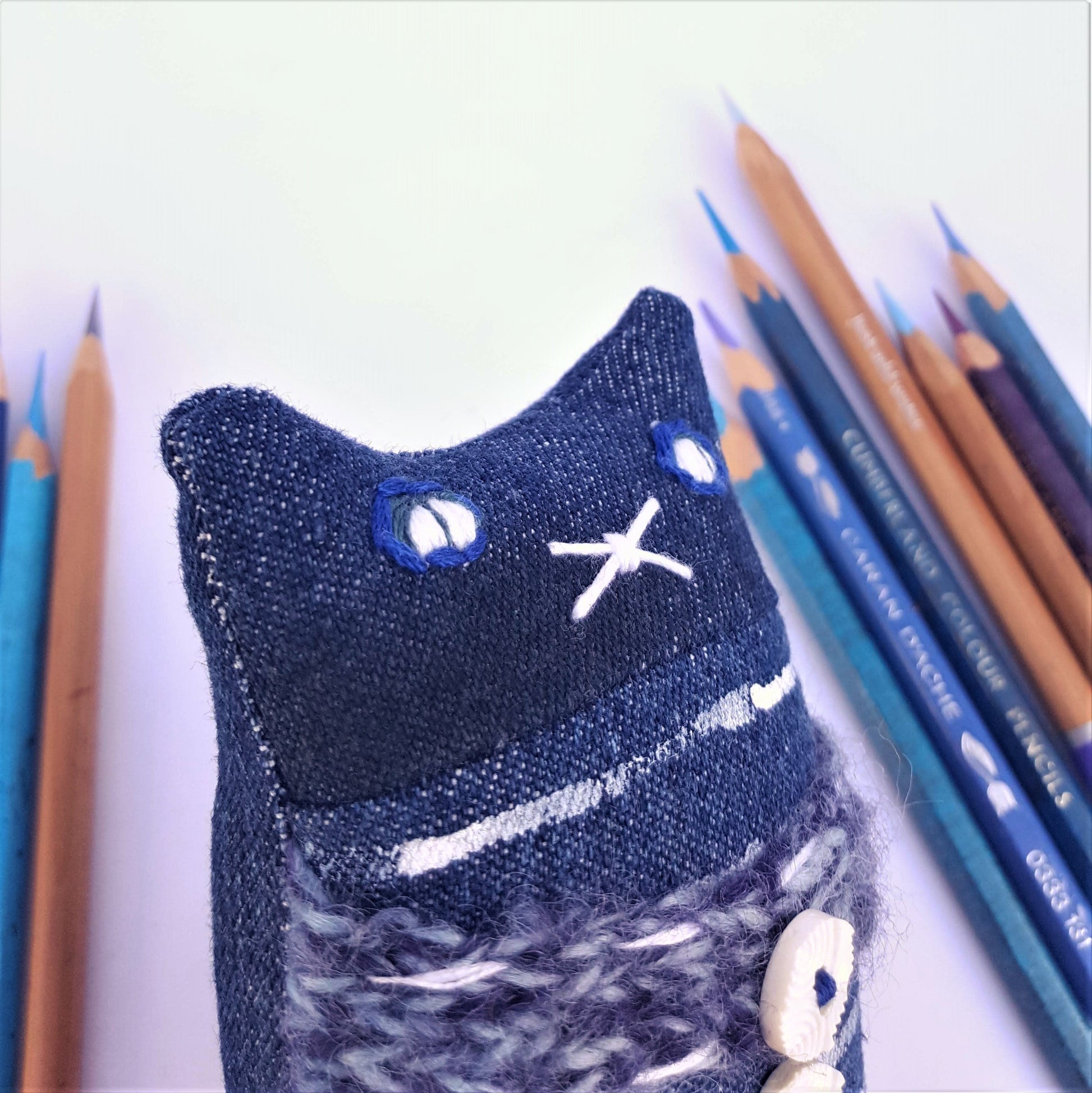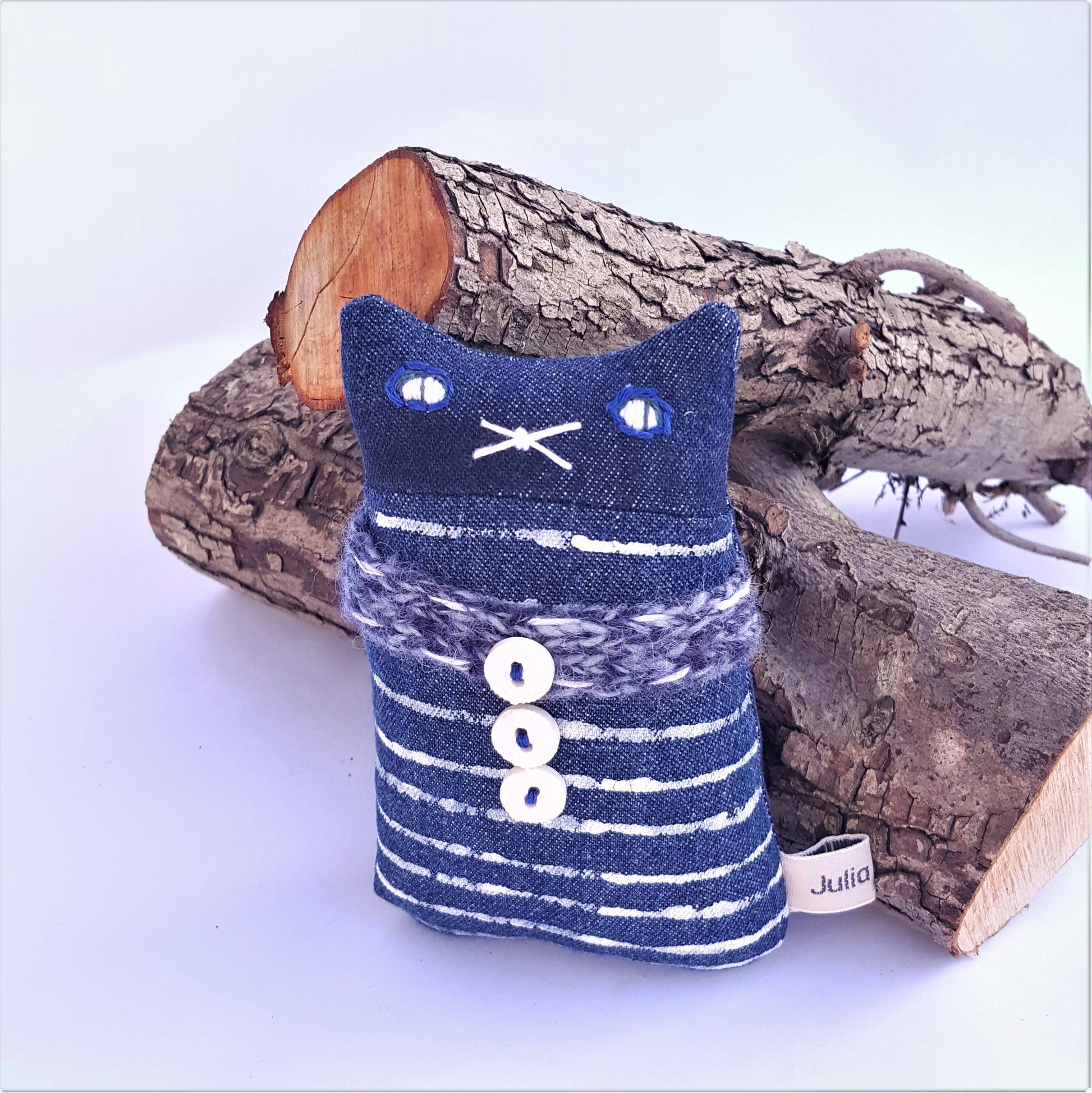 A cute and quirky ornamental soft-sculpture kitten doll called Mariner.