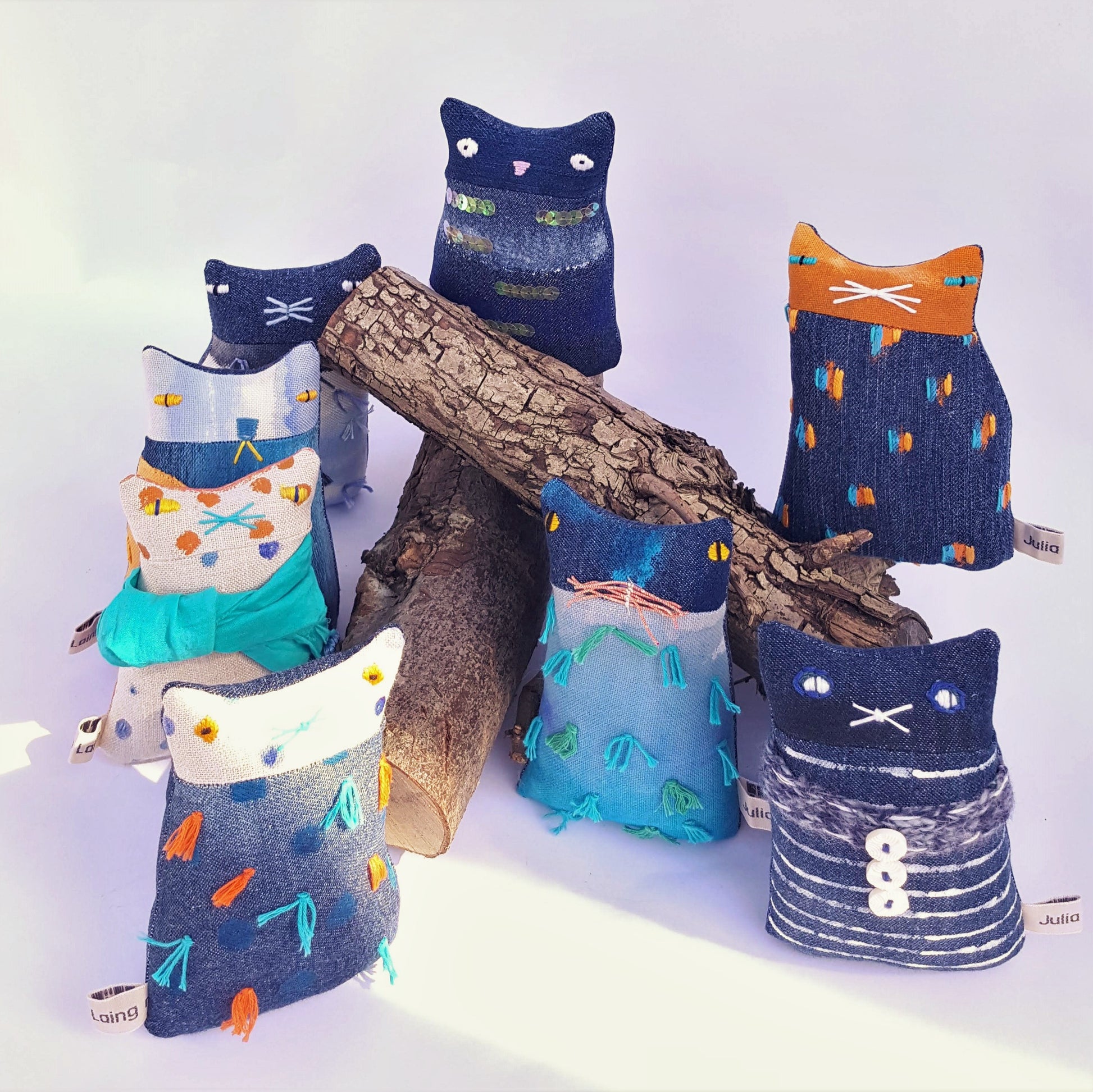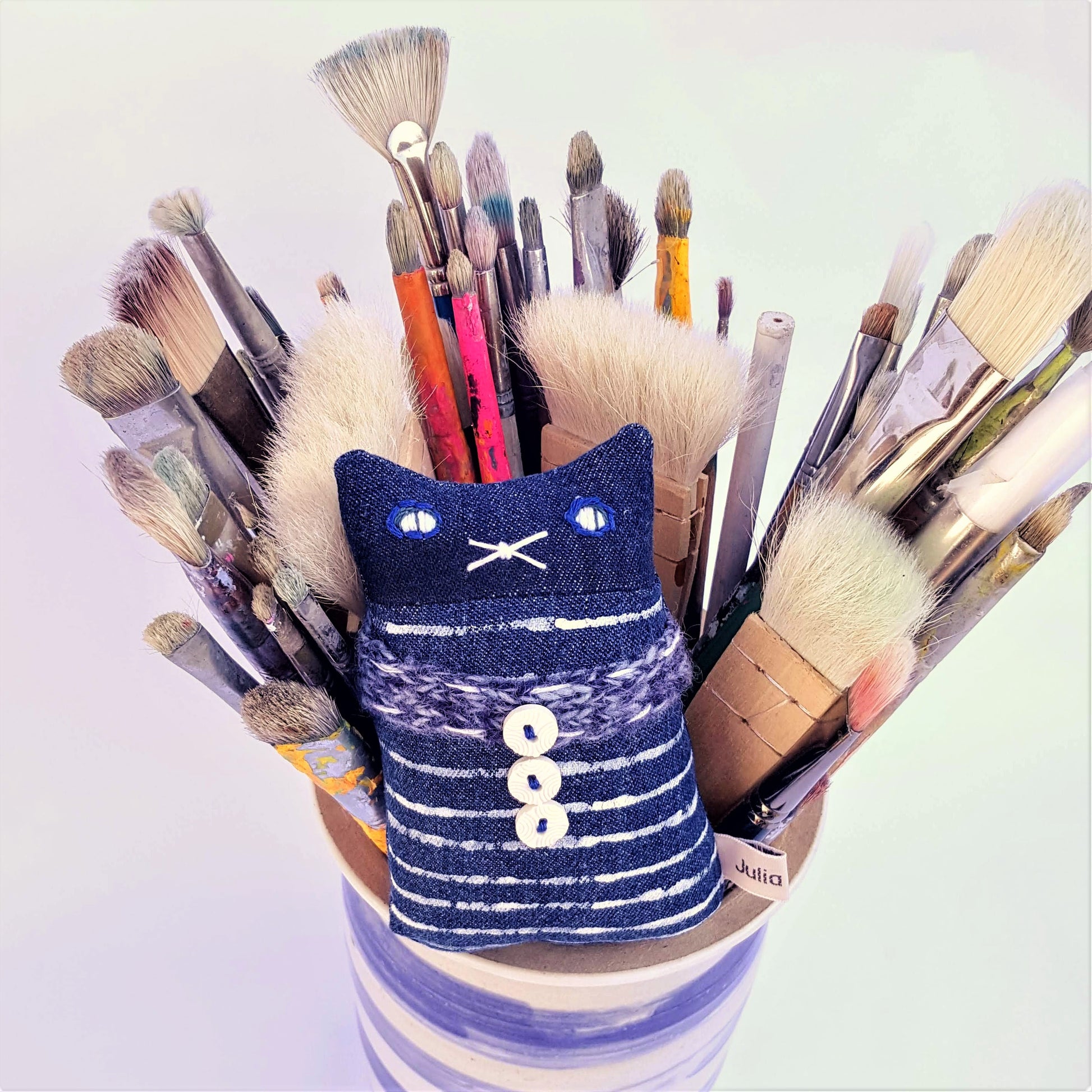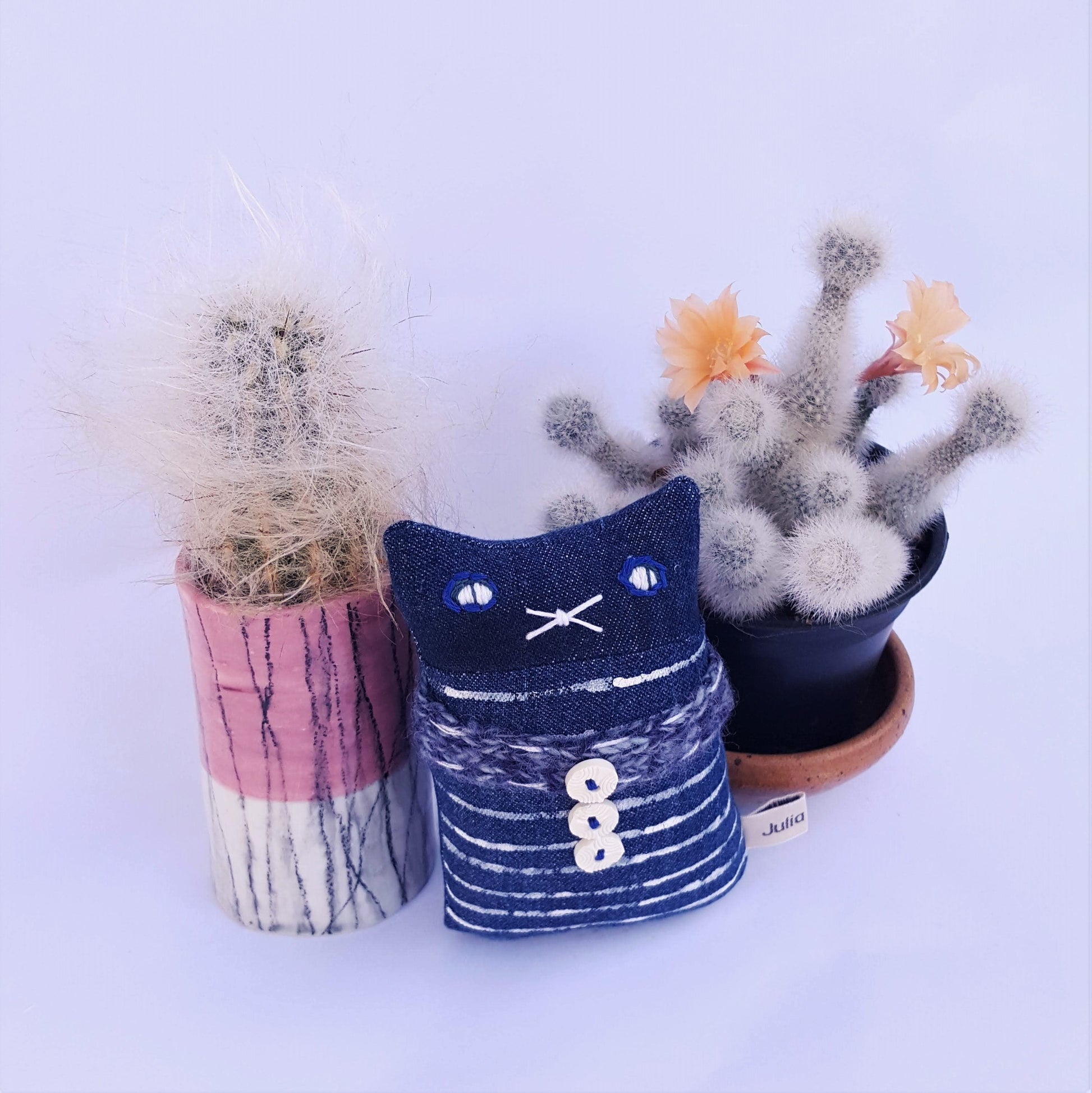 A cute and quirky ornamental soft-sculpture kitten doll called Mariner.