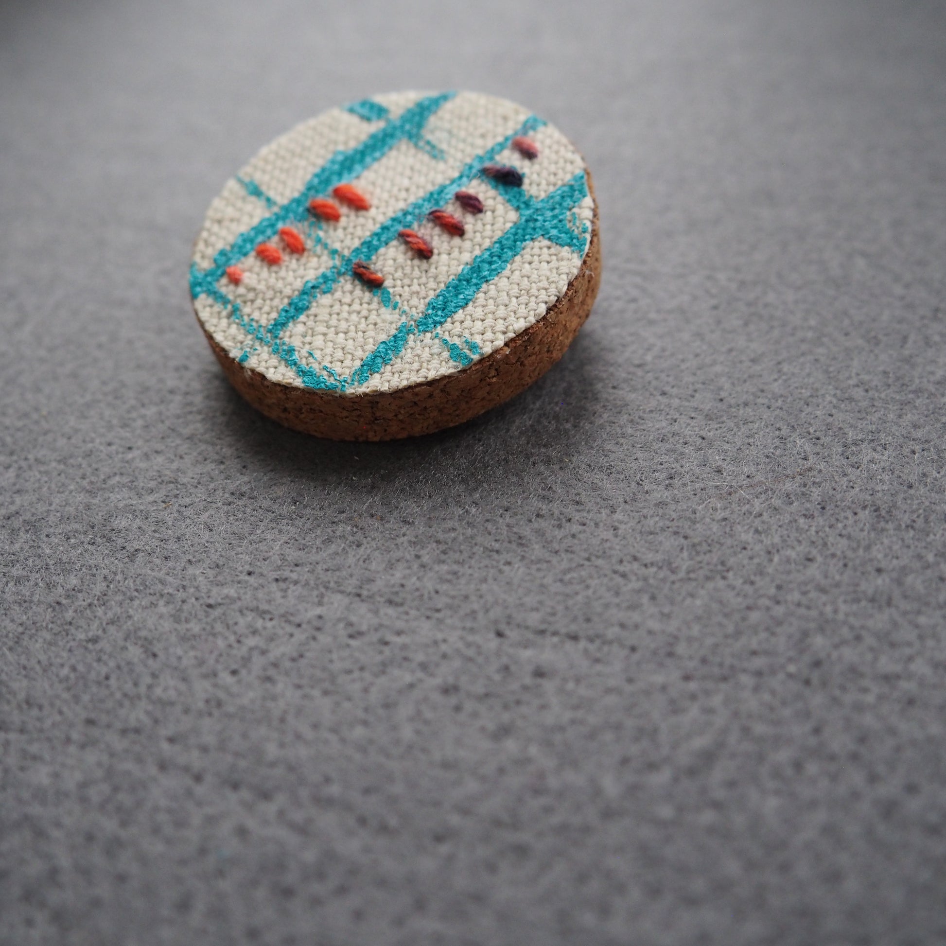 Handmade Printed Linen and Cork Brooch - Net Design - Batch 1 Number 9