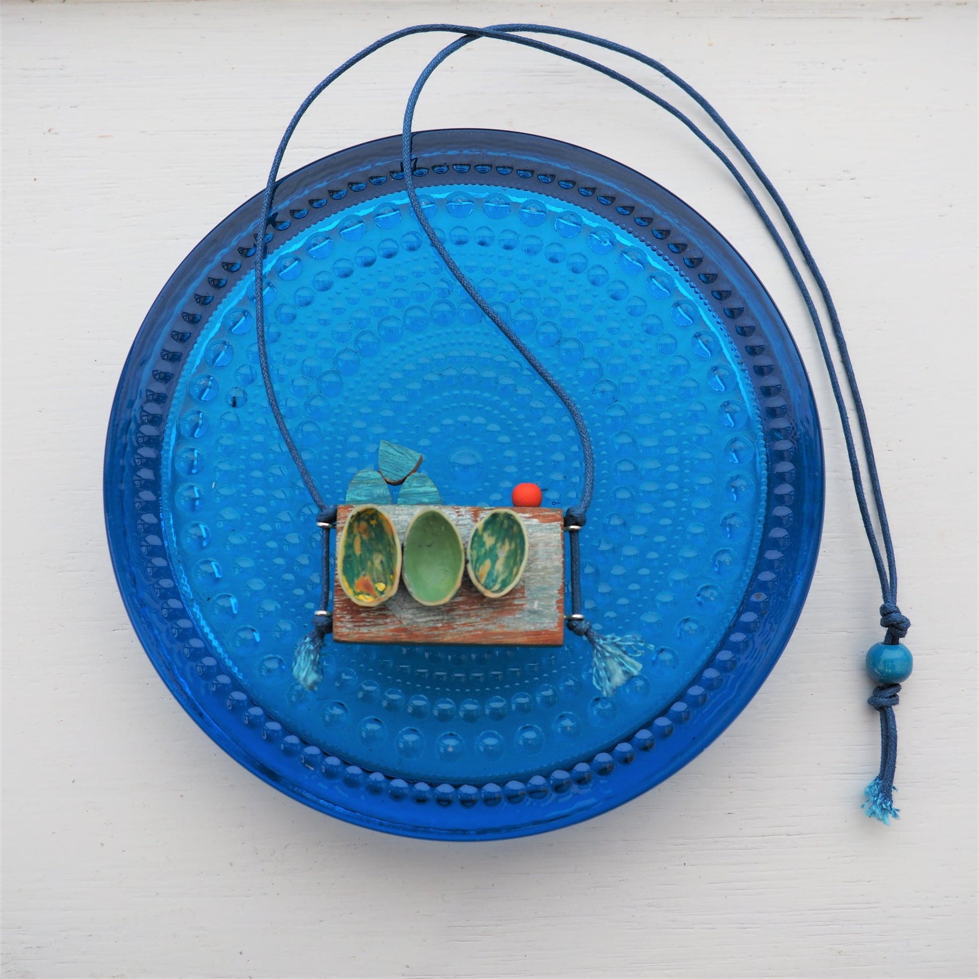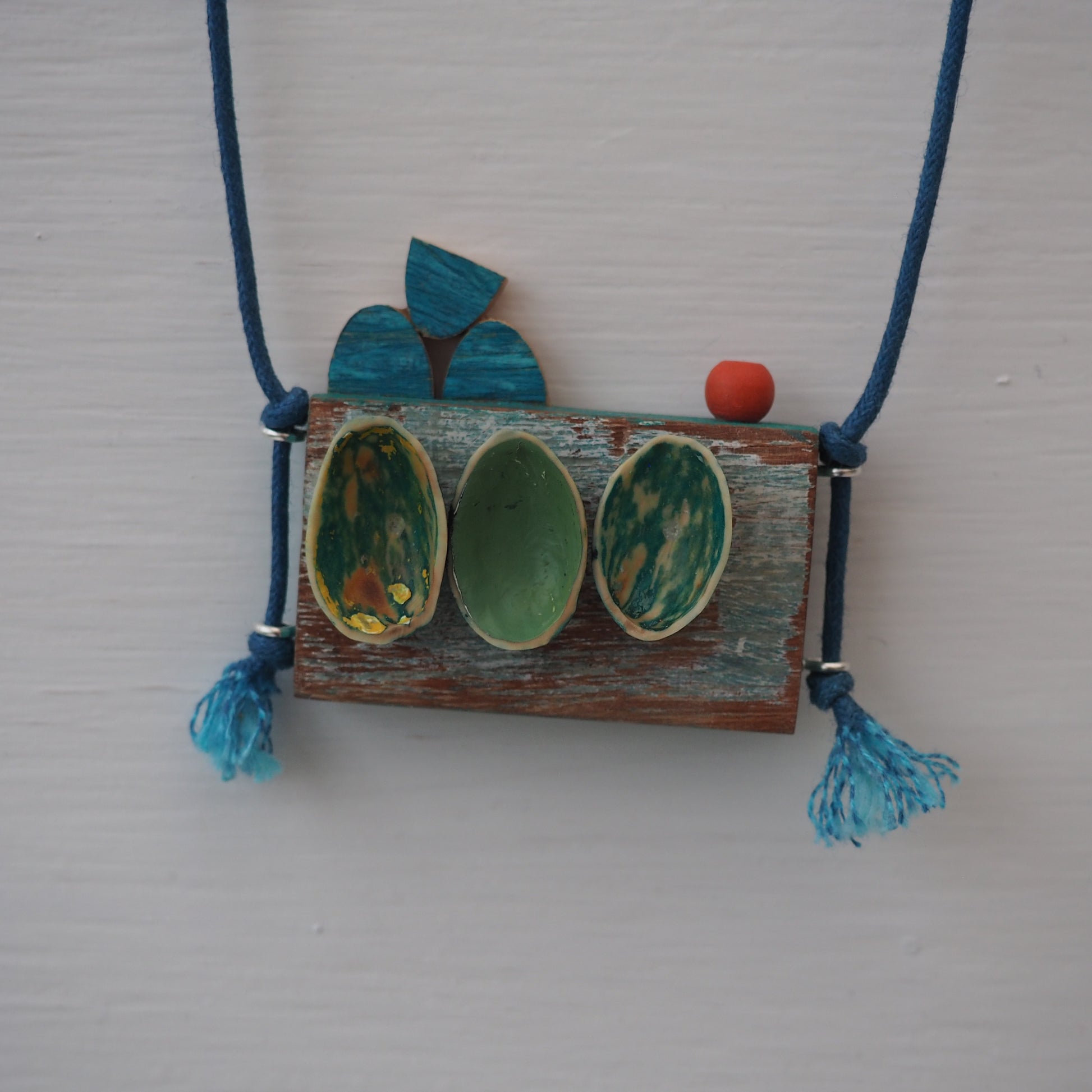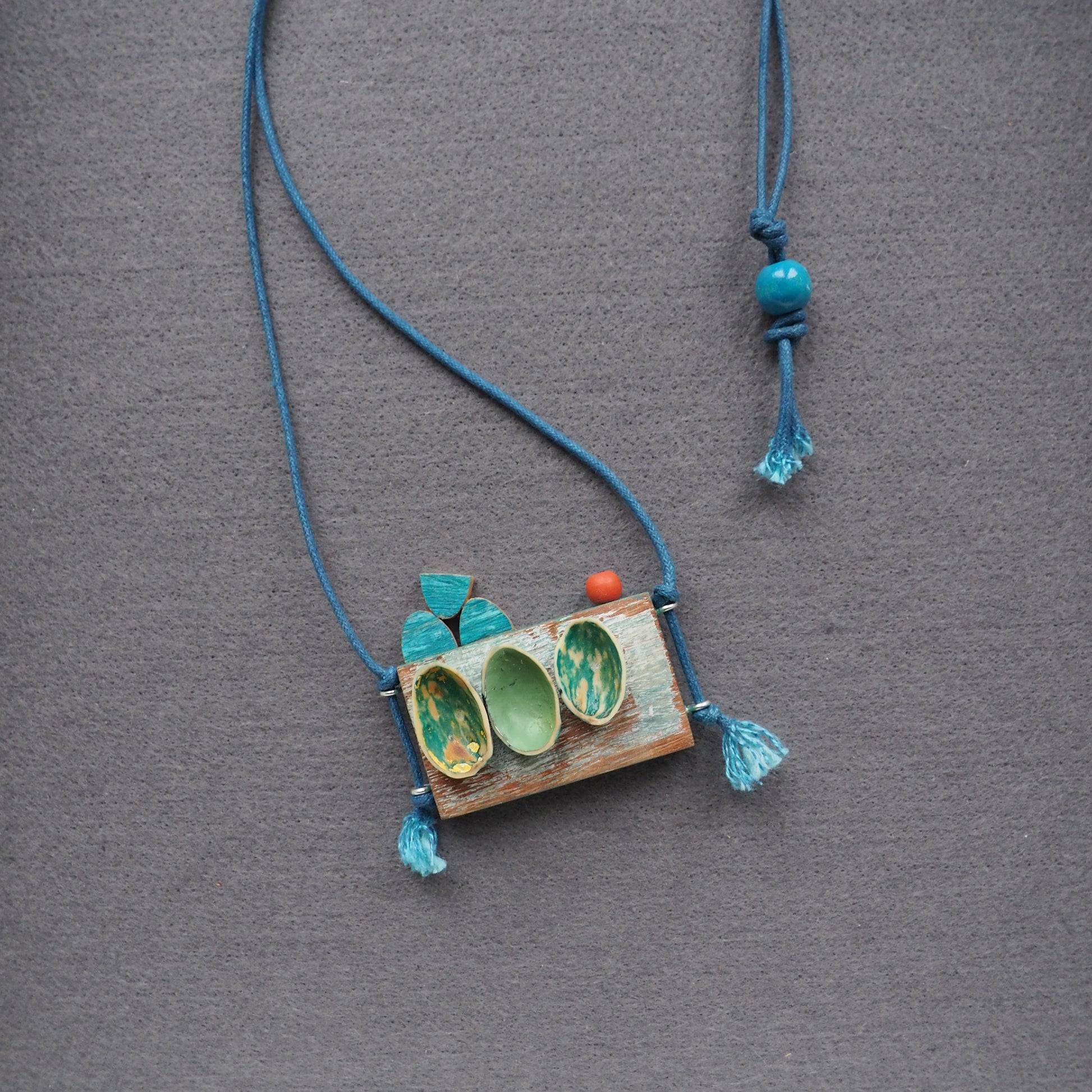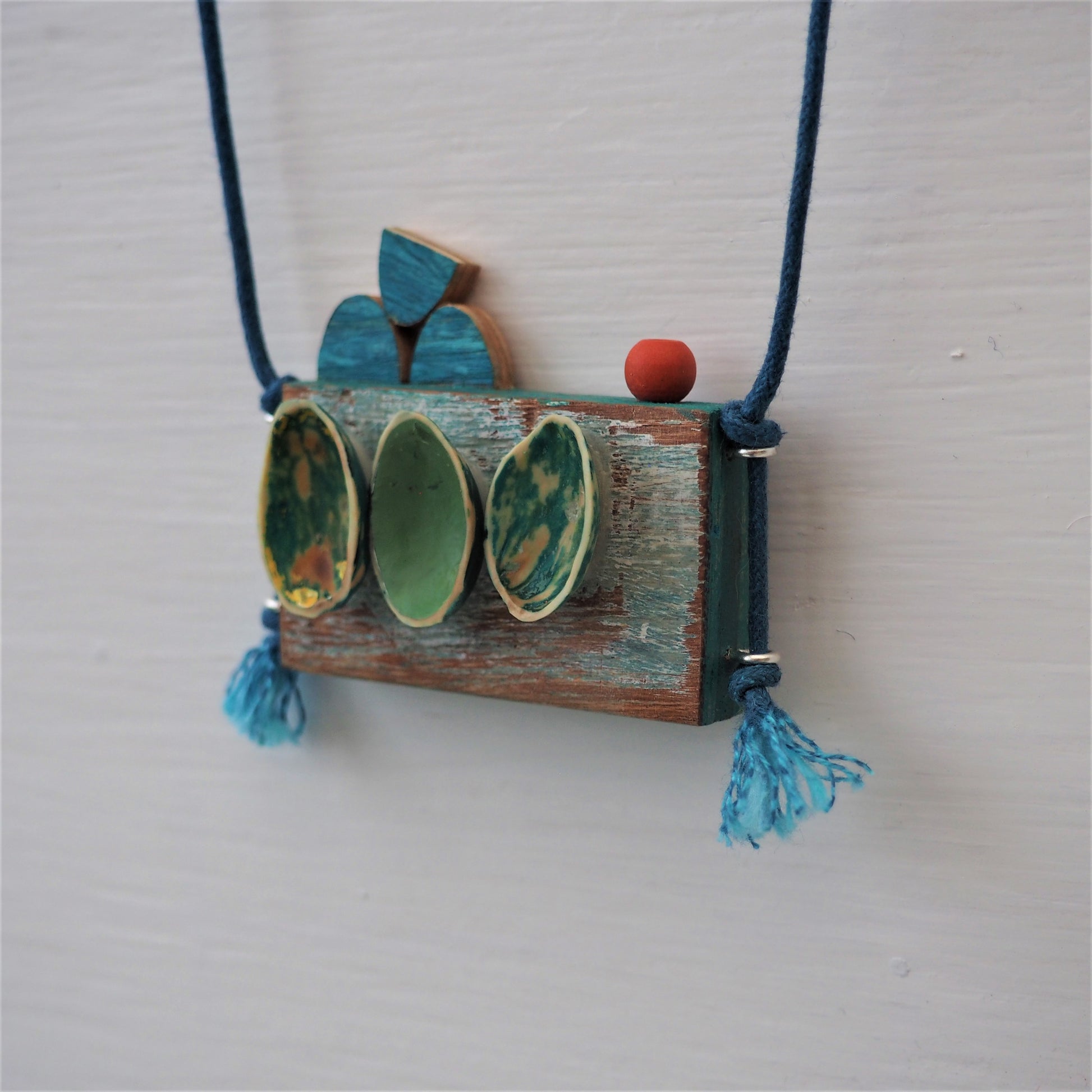 Completely unique wearable-art handmade necklace, inspired by the textures of weathered wood, and harbour views.