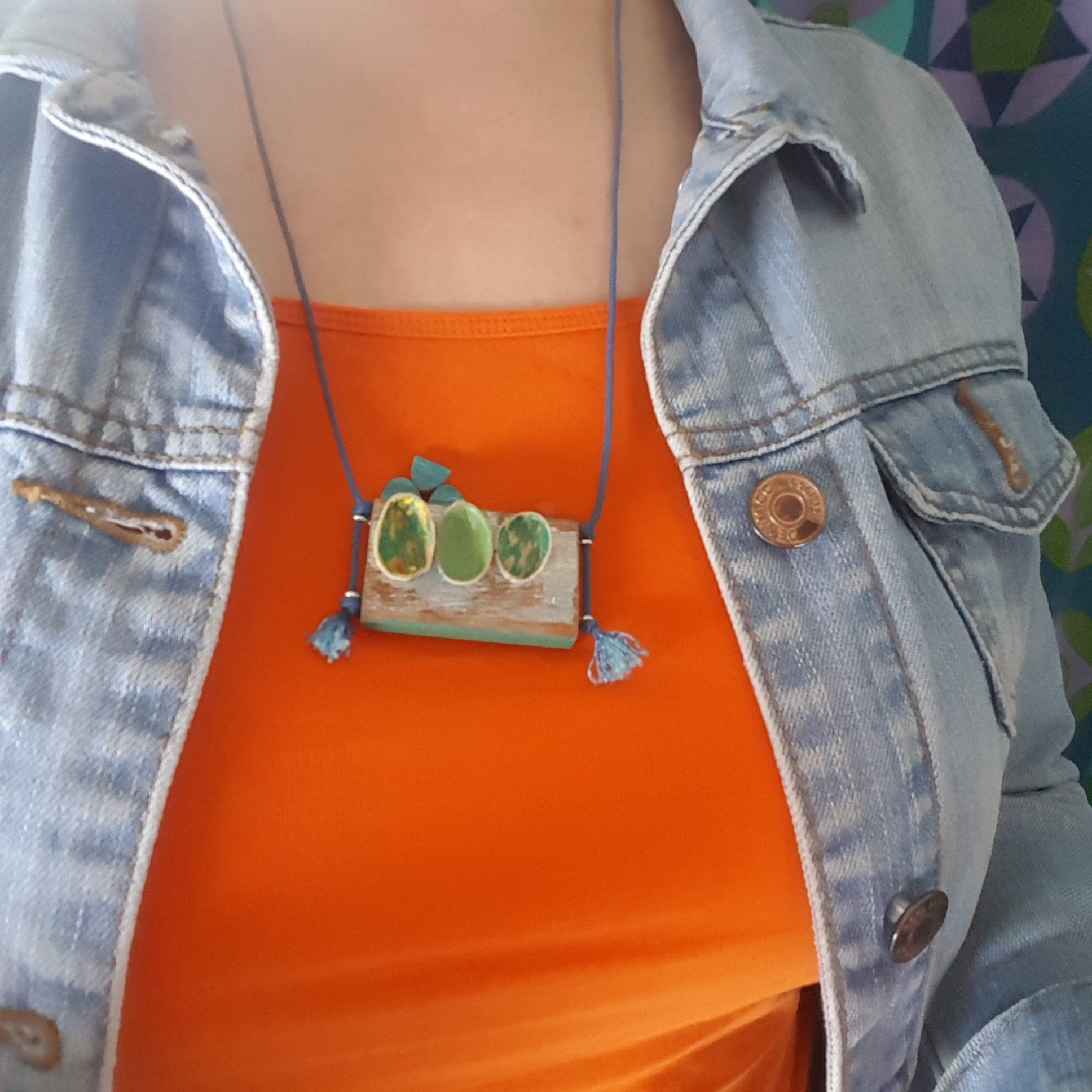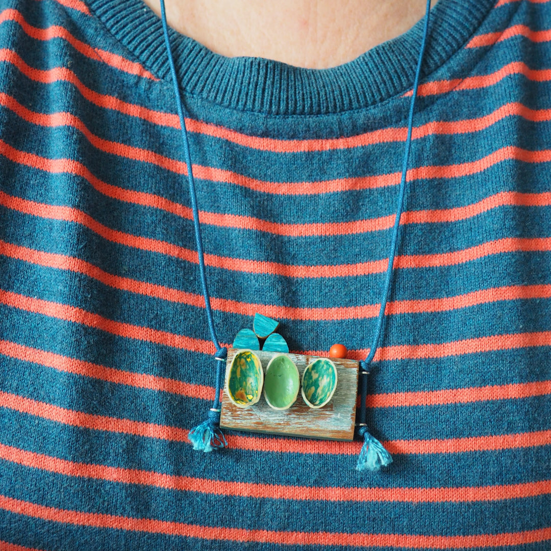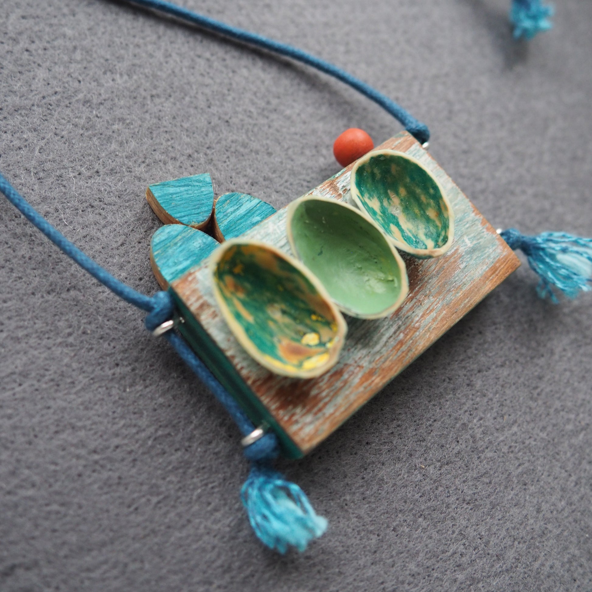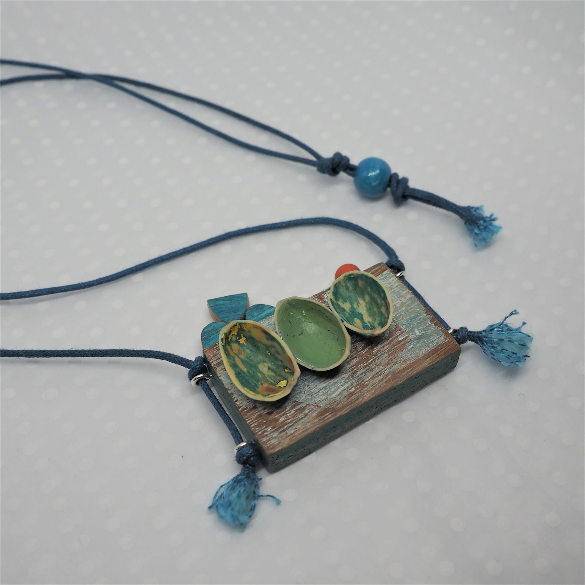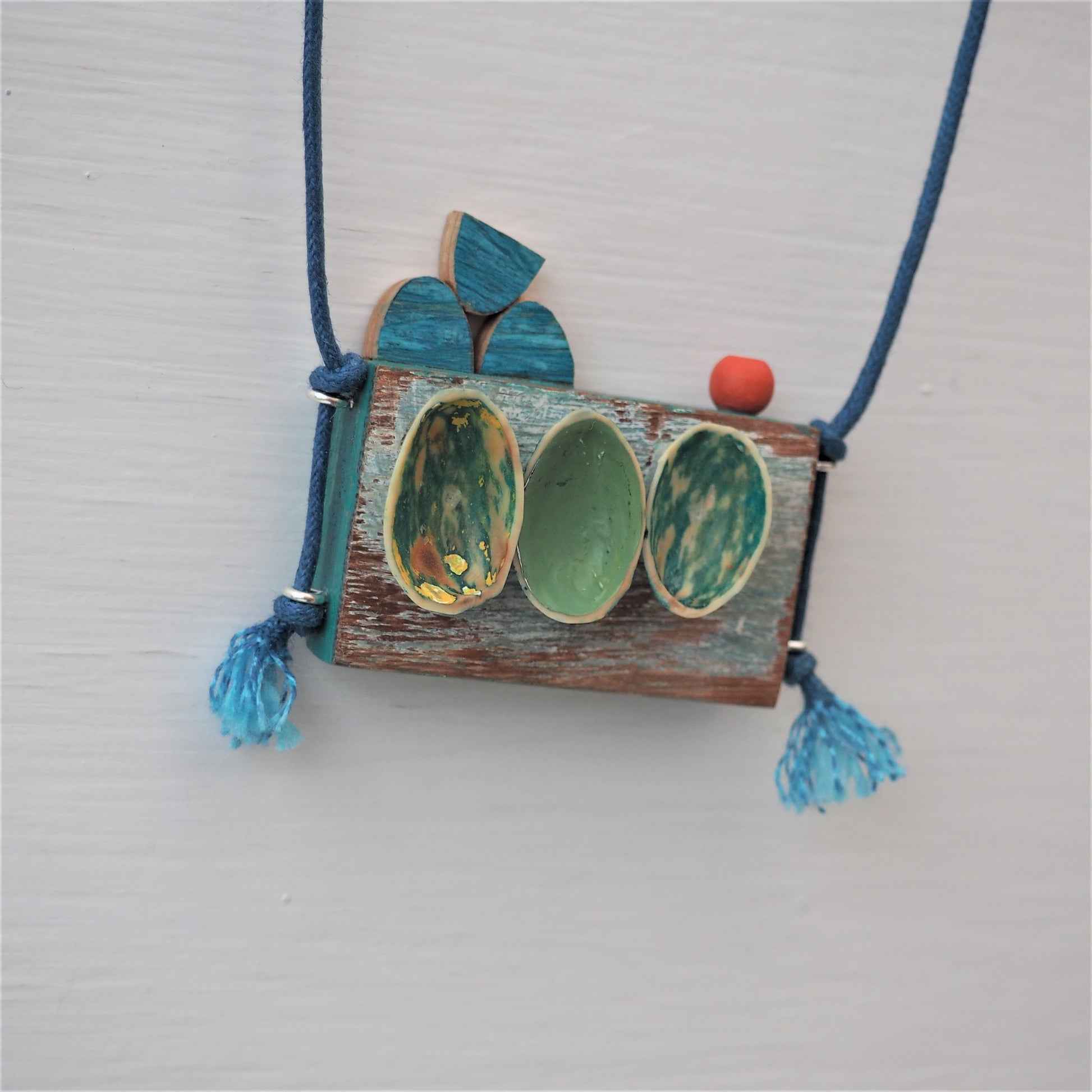 Completely unique wearable-art handmade necklace, inspired by the textures of weathered wood, and harbour views.