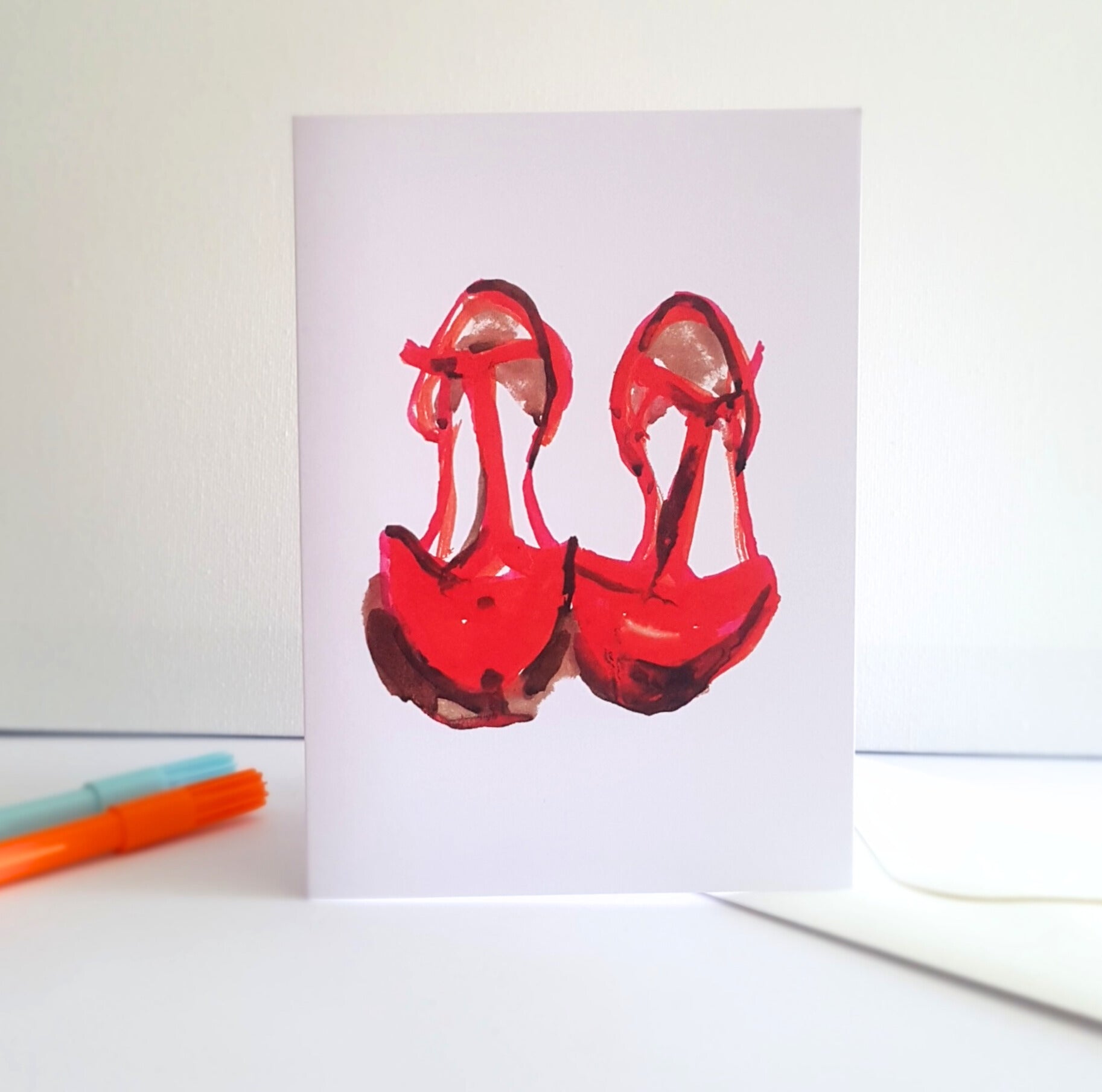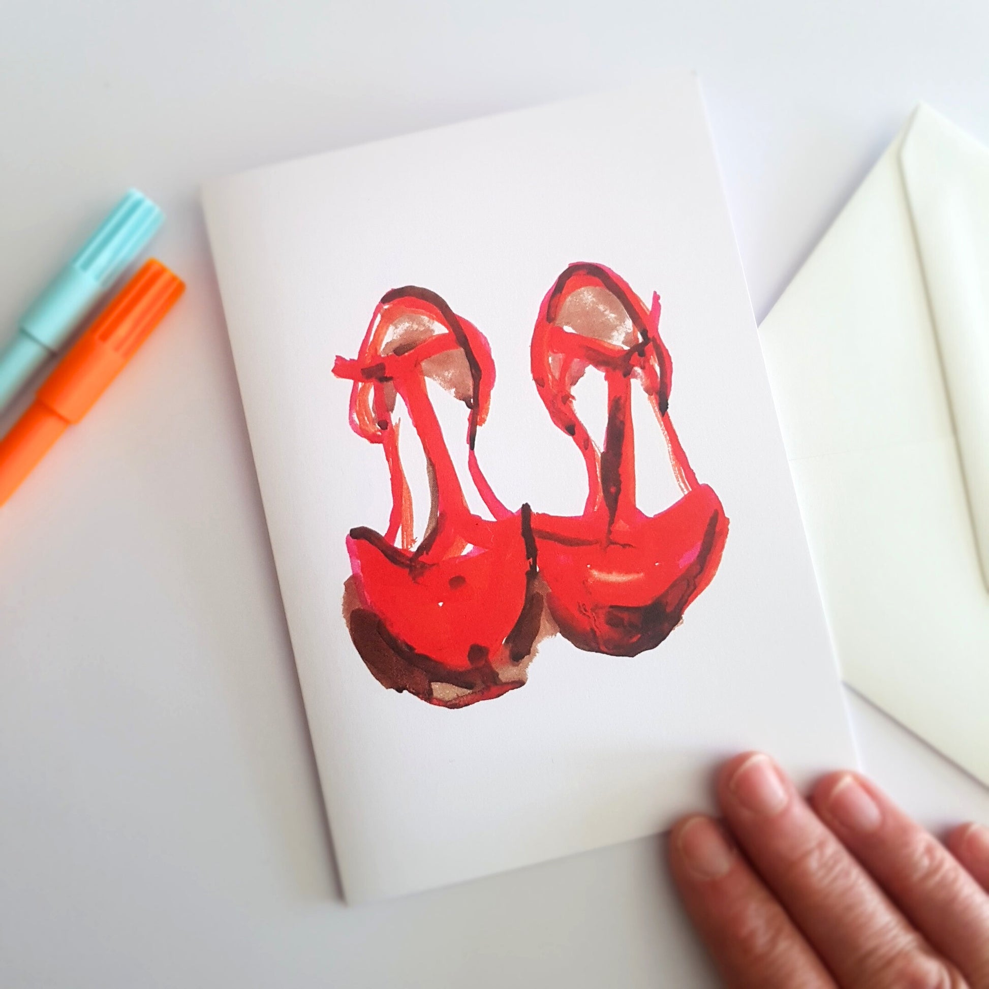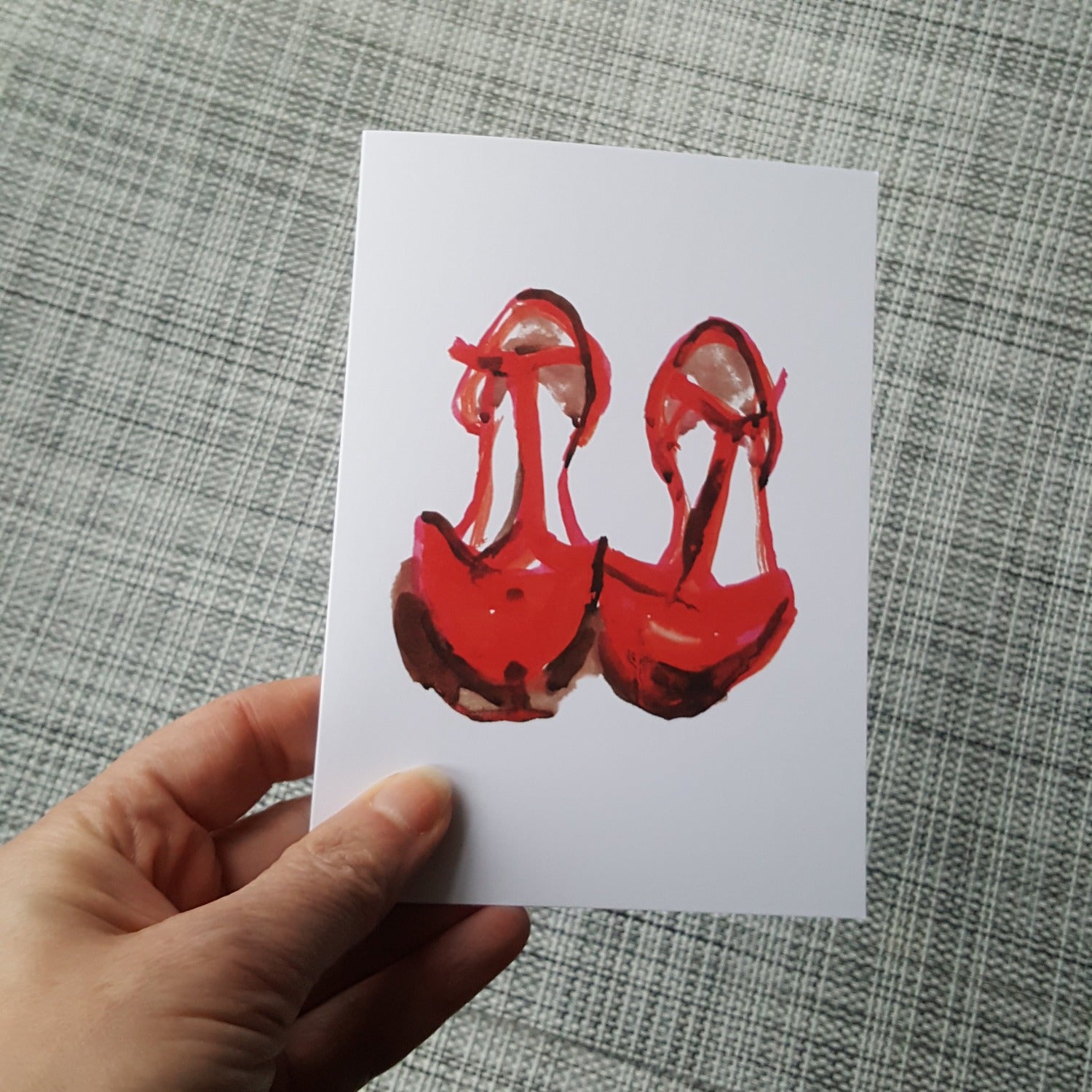 Featuring a beautiful red shoes illustration, this greeting card is perfect for any shoe-lover! The UK-made card is blank inside, perfect for adding your own personal message. Show someone special how much you care with this card today!