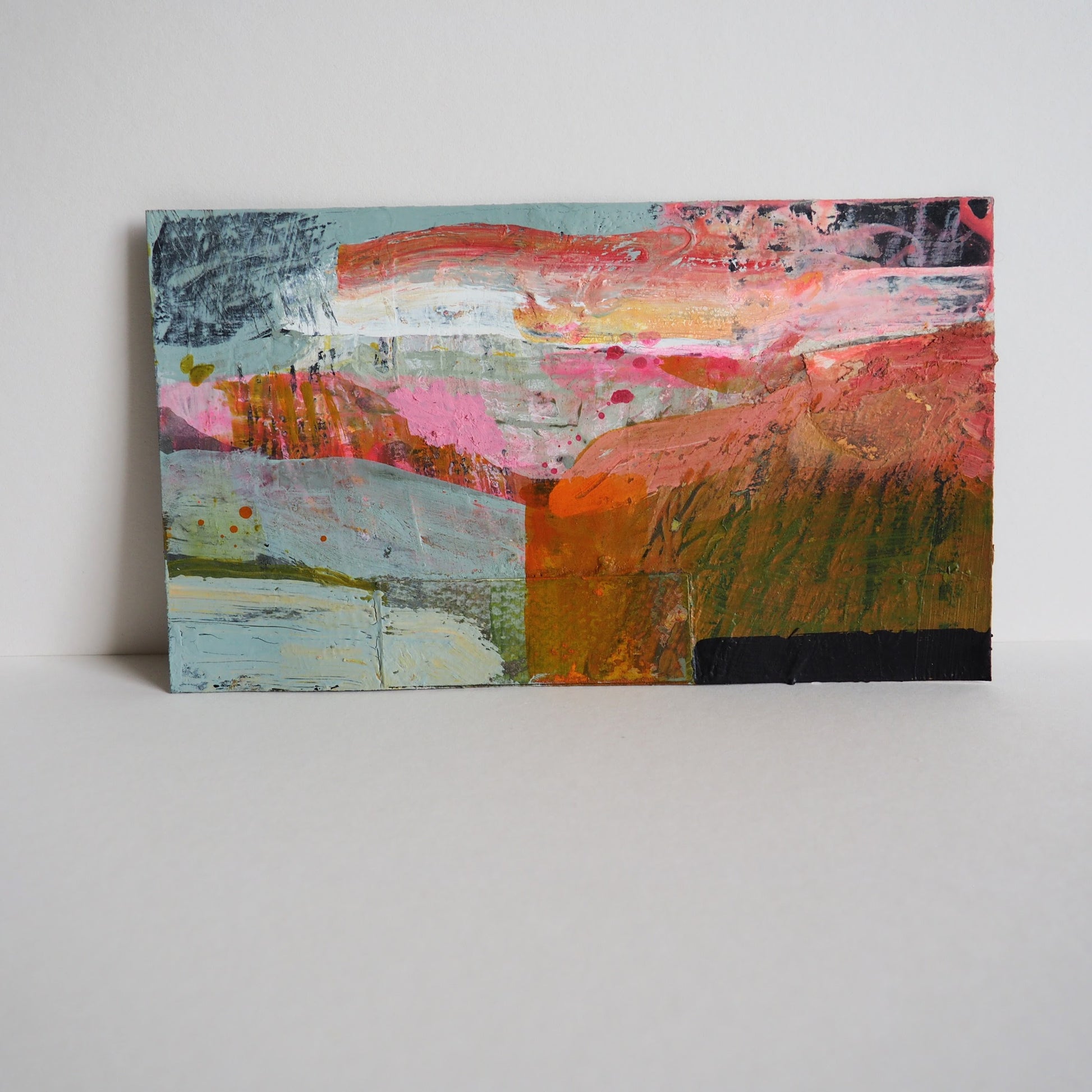 Small Mixed-media Landscape on Card 'Red Sky in the Morning'