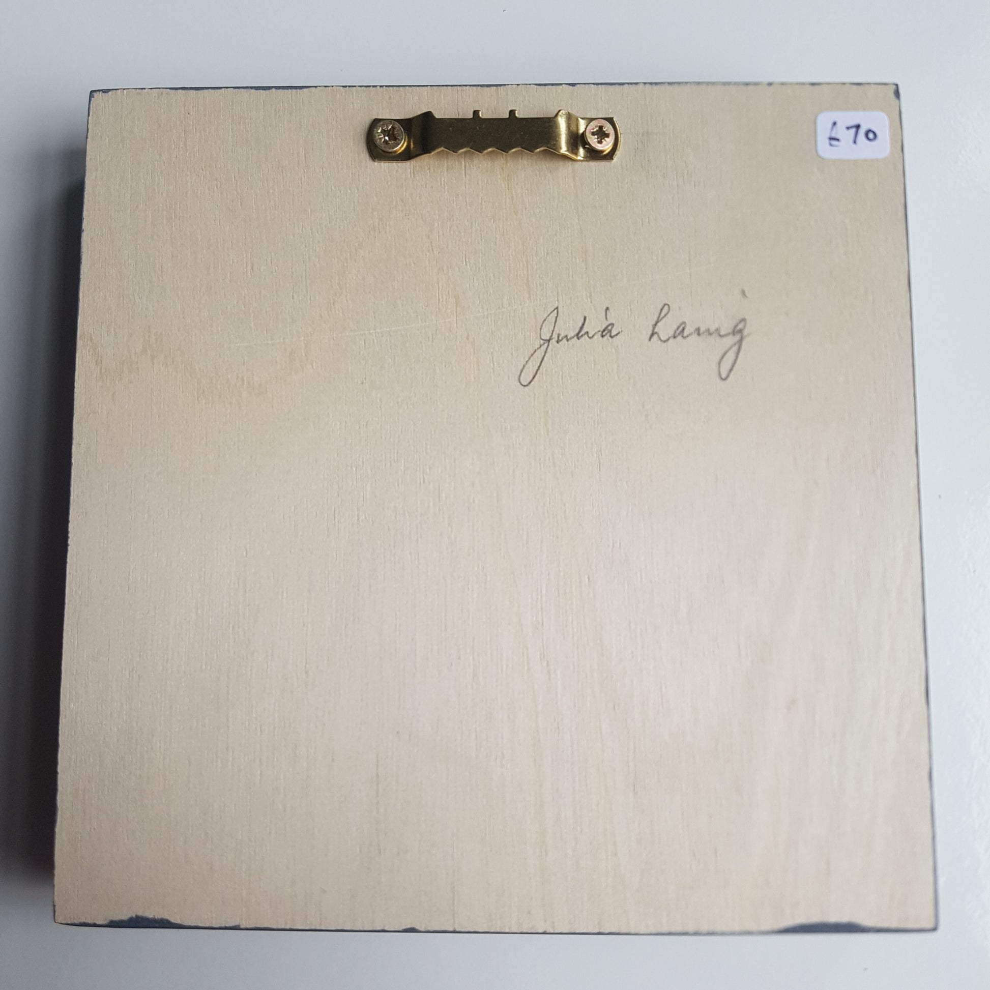 The miniature artwork measures 9cm x9cm (painted area), 15cm x 15cm including the frame.