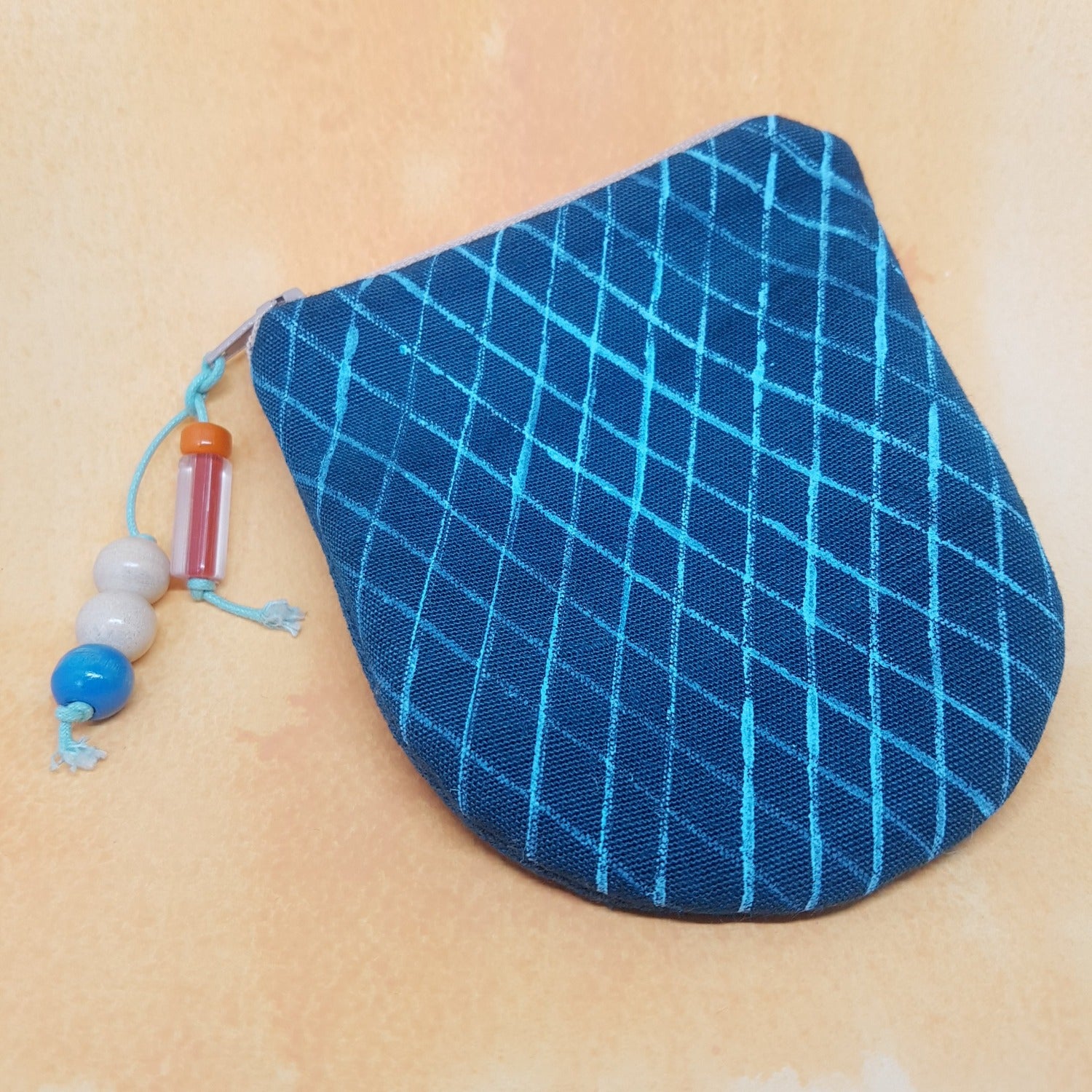 A surprisingly roomy little purse, carefully crafted from beautiful teal linen, with a turquoise net design I printed by hand.