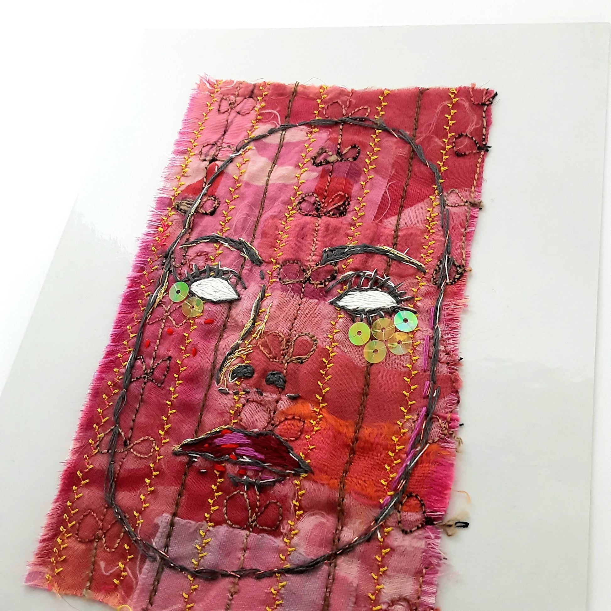 A unique richly textured textile art work, that I've called, Who Is Behind The Mask?