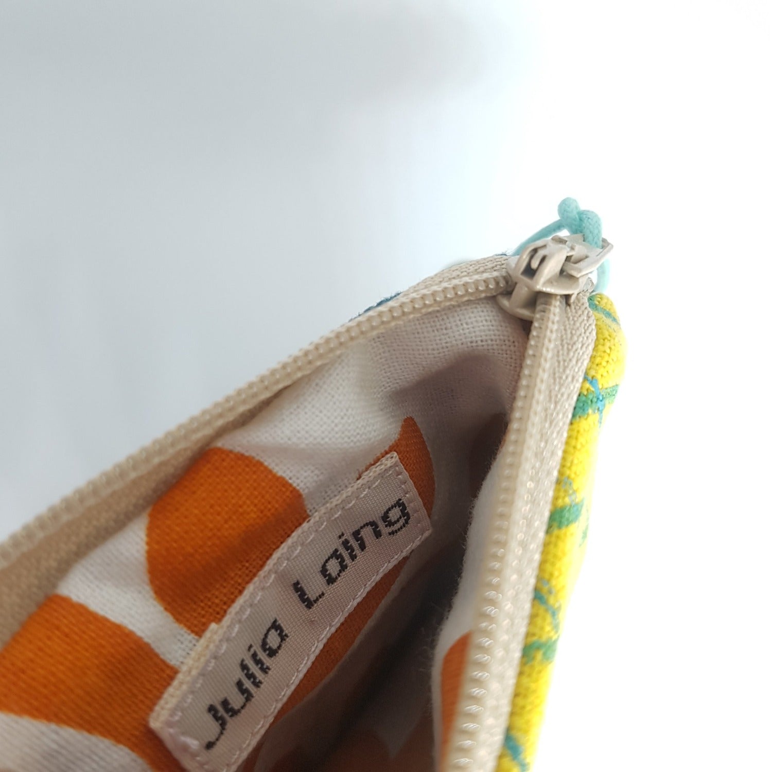 Yellow Hand-printed linen coin purse details